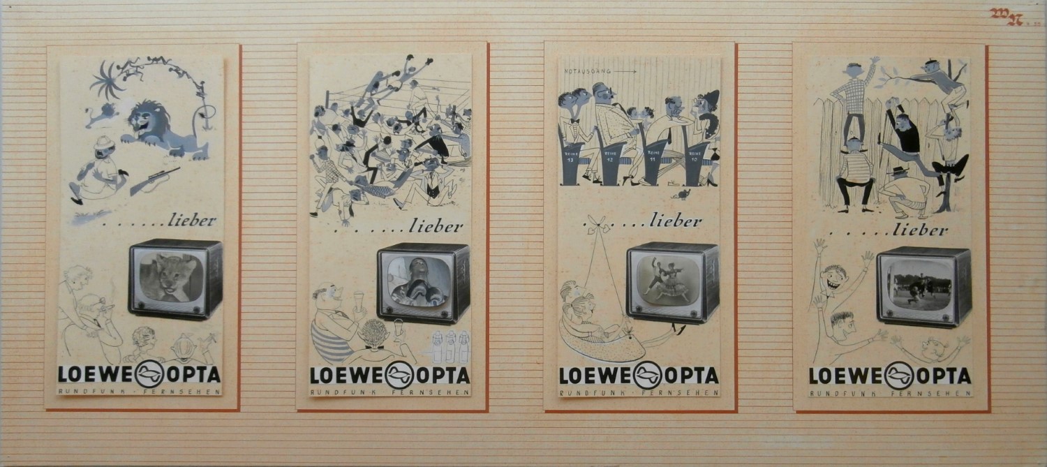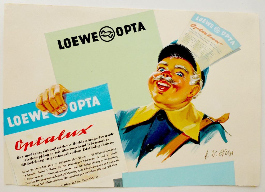 Wir freuen uns, dass „unser“ Künstler H.W. Neitzel, der von 1955-60 als Gestalter sämtlicher Werbemittel am Erscheinungsbild von LOEWE OPTA wesentlich mitgewirkt hatte, mit einigen Exponaten für seine Arbeit gewürdigt wird.