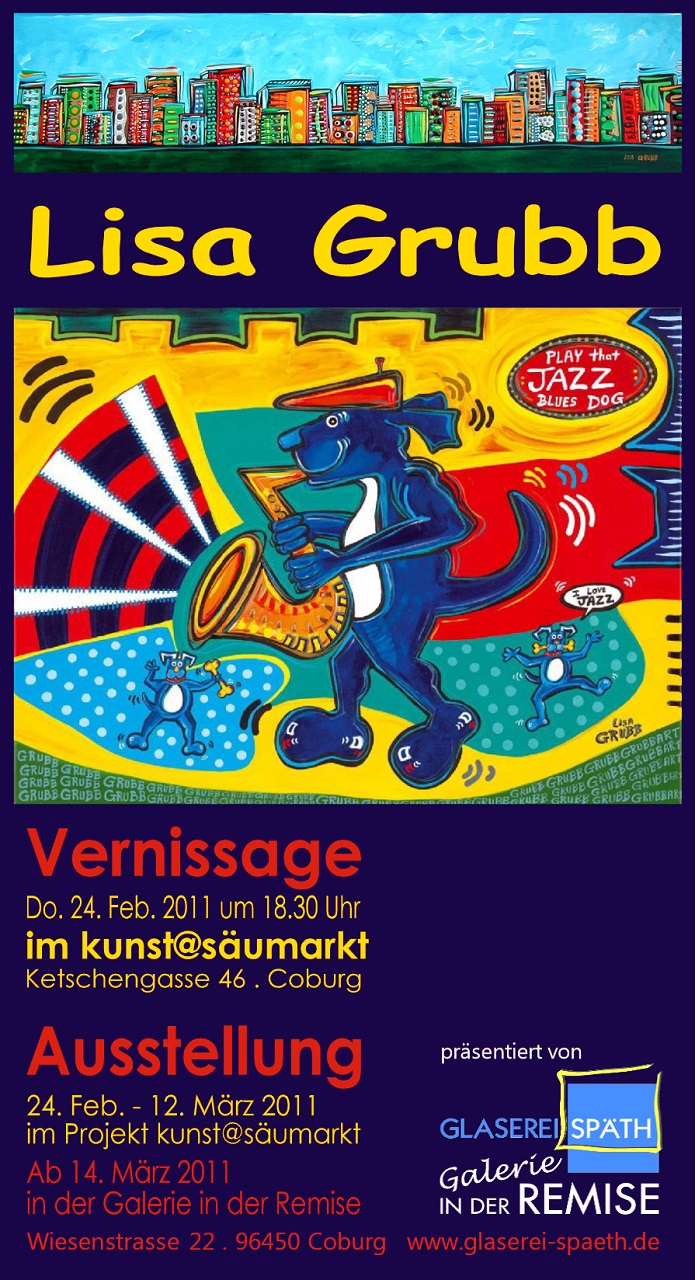 Lisa Grubb kann zahlreiche Ausstellungen und Präsentationen in namhaften Galerien im Großraum New York sowie im amerikanischen Fernsehen vorweisen. Sie ist mit ihren Werken wieltweit in zahlreichen Sammlungen vertreten. Pläne für die Zukunft umfassen die Entwicklung ihrer Kinderbuchserie der „Happy Dog“-Familie mit Figurenf ür Animation. Die Künstlerin engagiert sich mit Verkaufserlösen für verschiedene Wohlfahrtsorganisationen.