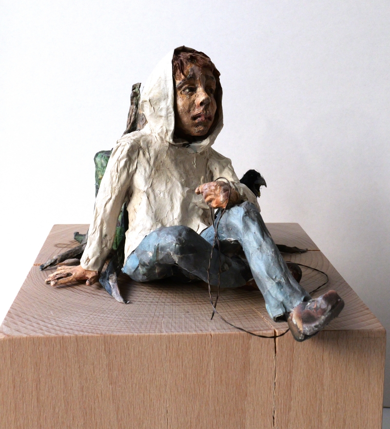 DAS MÄDCHEN MIT DEM HUHN . Papier und Draht . 20x6x6cm