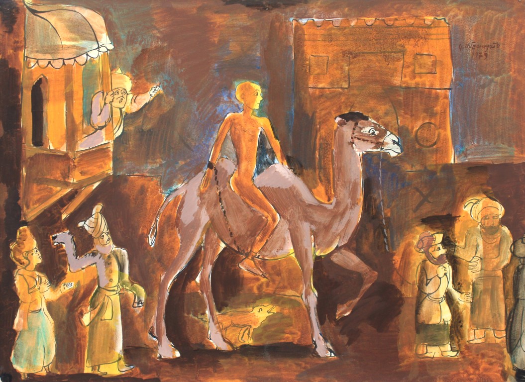 / AUF DEM KAMEL . aus: 1001 NACHT . 1979-80 . Gouache auf Papier . 55x75cm