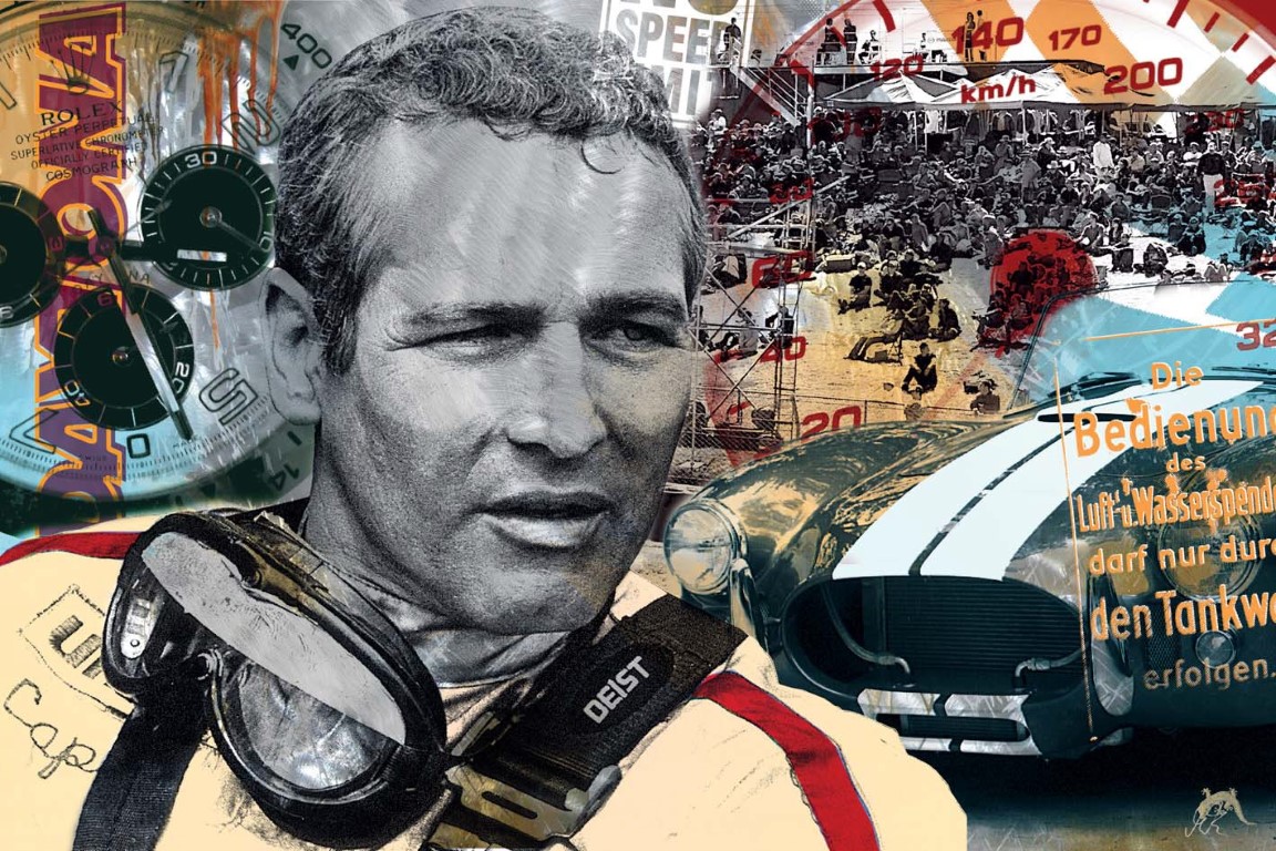 DAYTONA – PAUL NEWMAN . Mischtechnik auf Alu . 100×150 cm