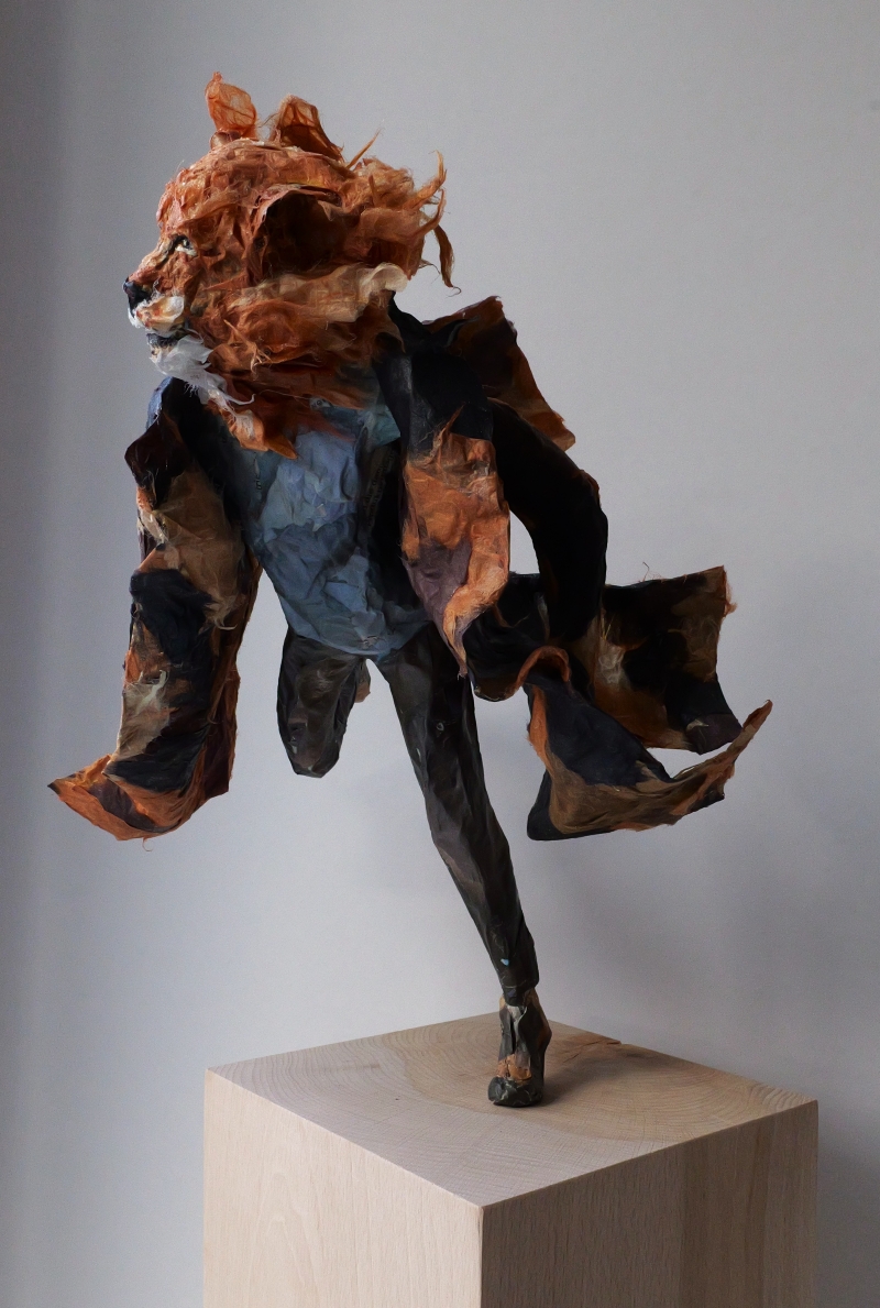 / DER GROSSE LEON . Papier und Draht . 28x26x26cm