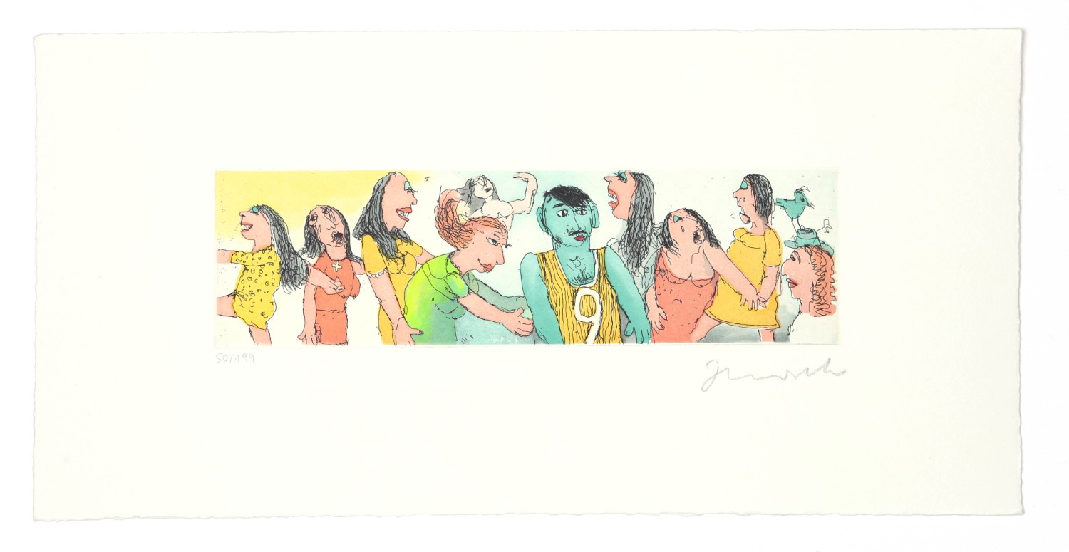 DER GRÜNE RUDI . Radierung . Bildformat: 8×27,5 cm . Blatt: 30×50 cm