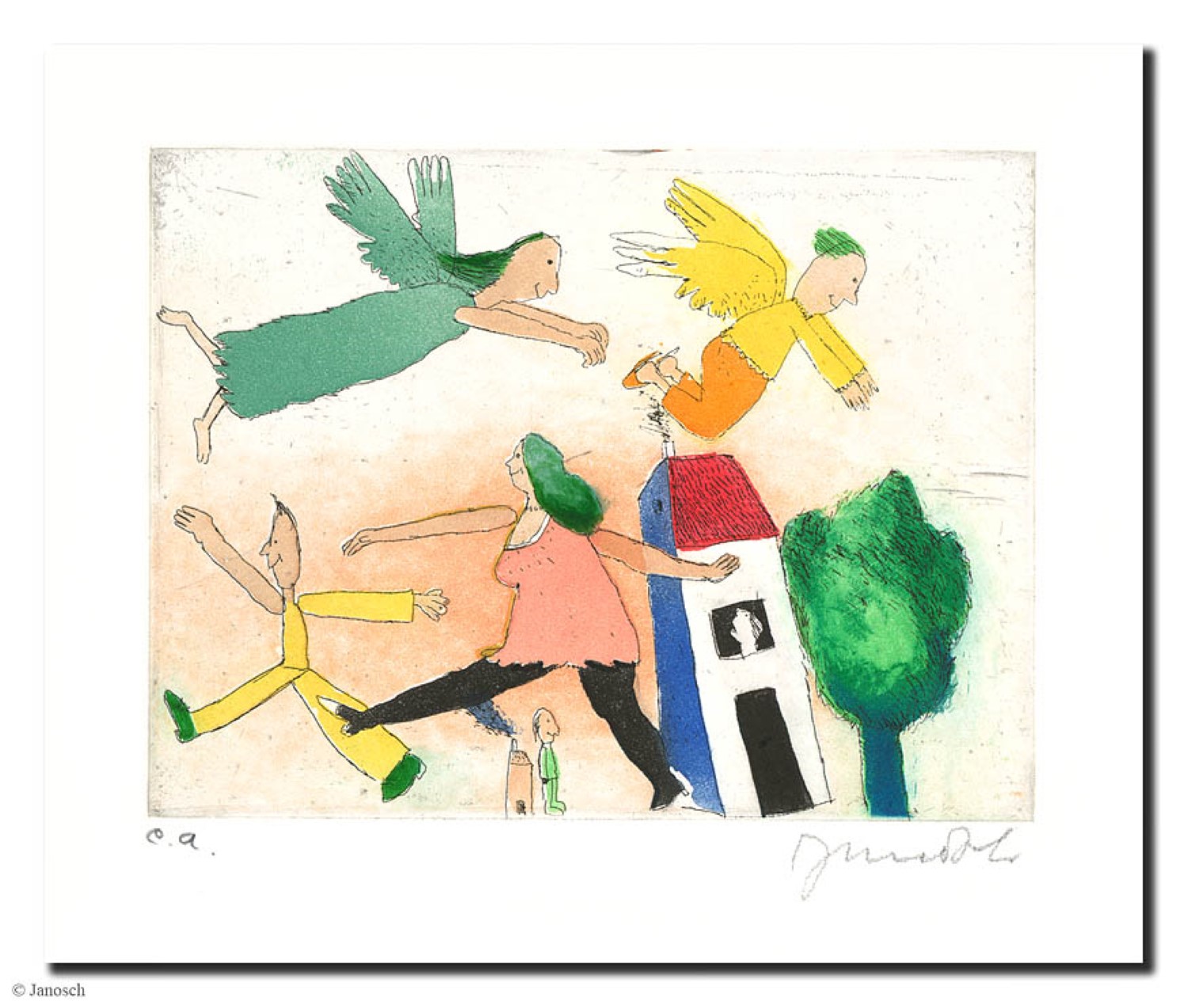 DIE LEUTE OBEN + DIE LEUTE UNTEN . Radierung . Bildformat: 15×20 cm . Blatt: 40×50 cm
