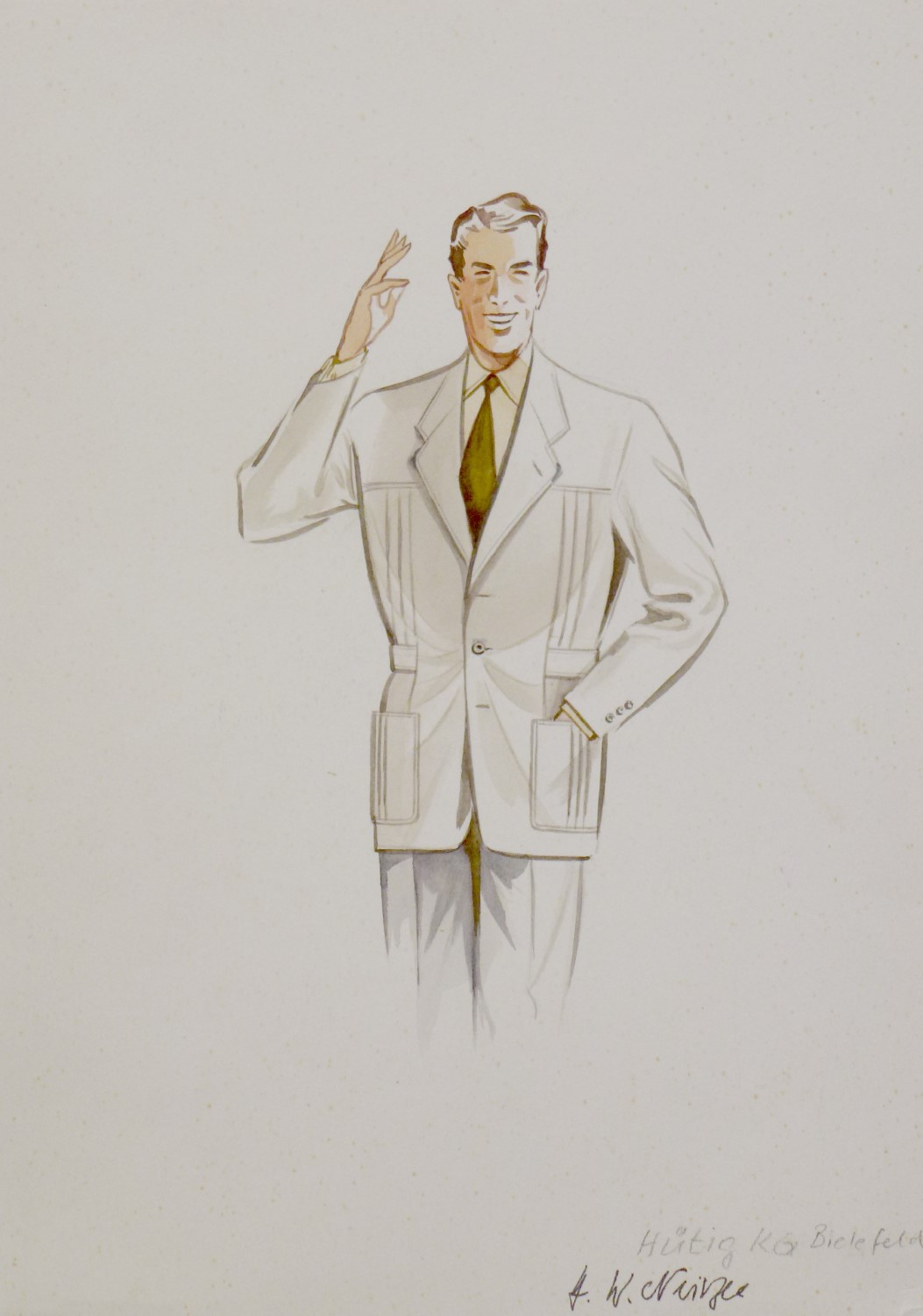 / Hütig-KG Bielefeld . SPORTJAKETT . 1954 . Graphit/Aquarell auf Karton . 28,7×20 cm