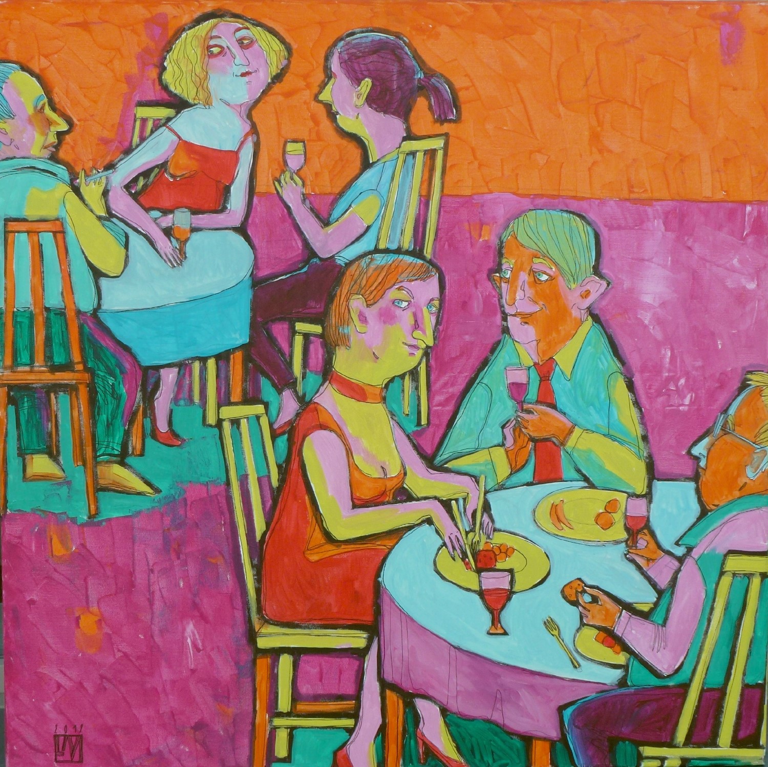 / IM RESTAURANT – Acryl auf Leinwand . 100×100 cm