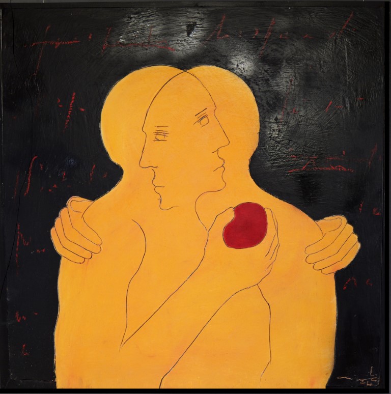 / OT . (les Jaunes – Herz) . Mischtechnik auf Holz . 82c82cm