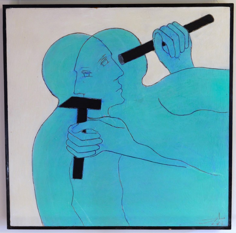 OT . (les Turquises – Hammer) . Mischtechnik auf Holz . 82x82cm