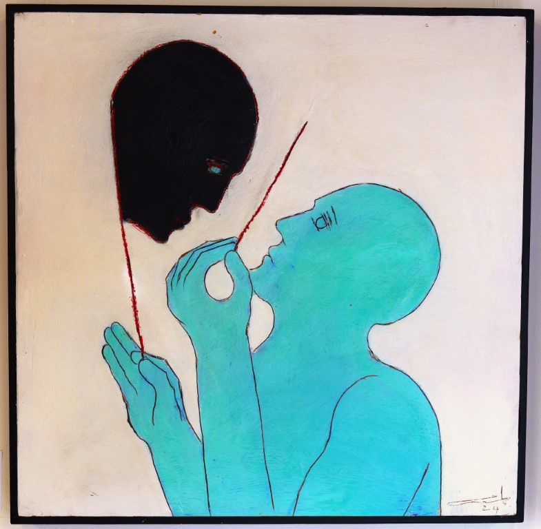 OT . (les Turquises – Kopf) . Mischtechnik auf Holz . 82x82cm