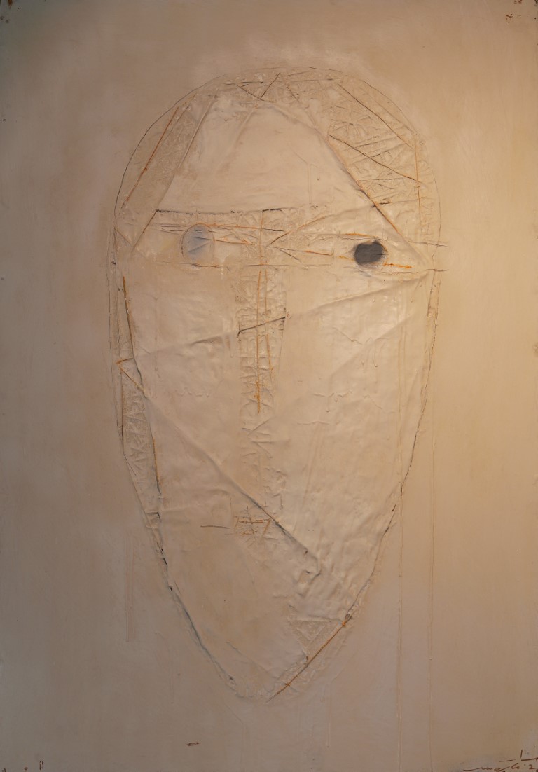 OT_Maske No5 . Mischtechnik auf Holz . 124x87cm