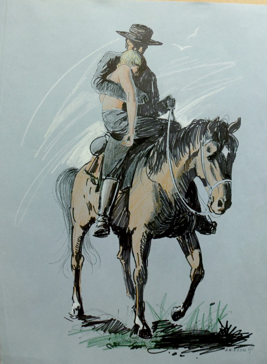 REITER MIT SOHN . Tusche und kreide auf Papier . 48×38,2 cm