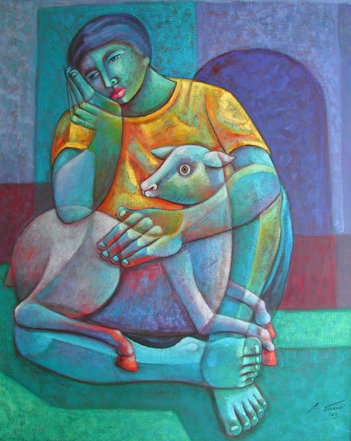 MENINO ENCANTADO . -verzauberter Junge- . Öl auf Leinwand . 50×50 cm