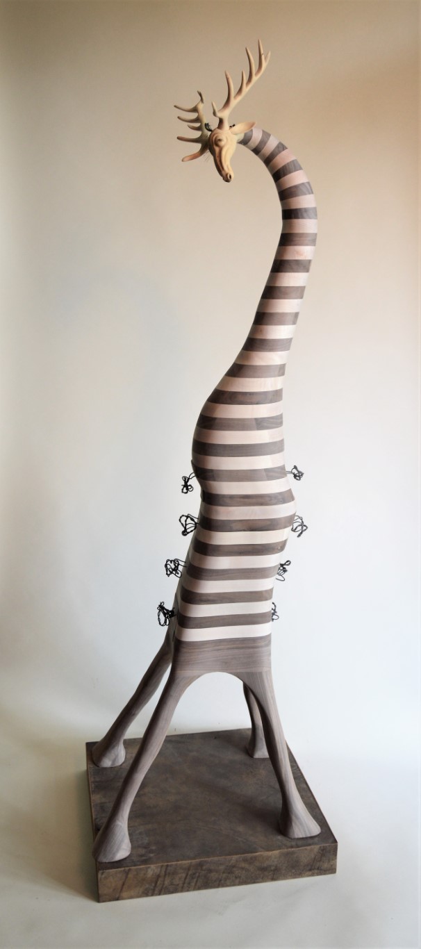 STRIPED DEAR . Amerikanischer Nussbaum, Ahorn und Leder . 50x50x167 cm