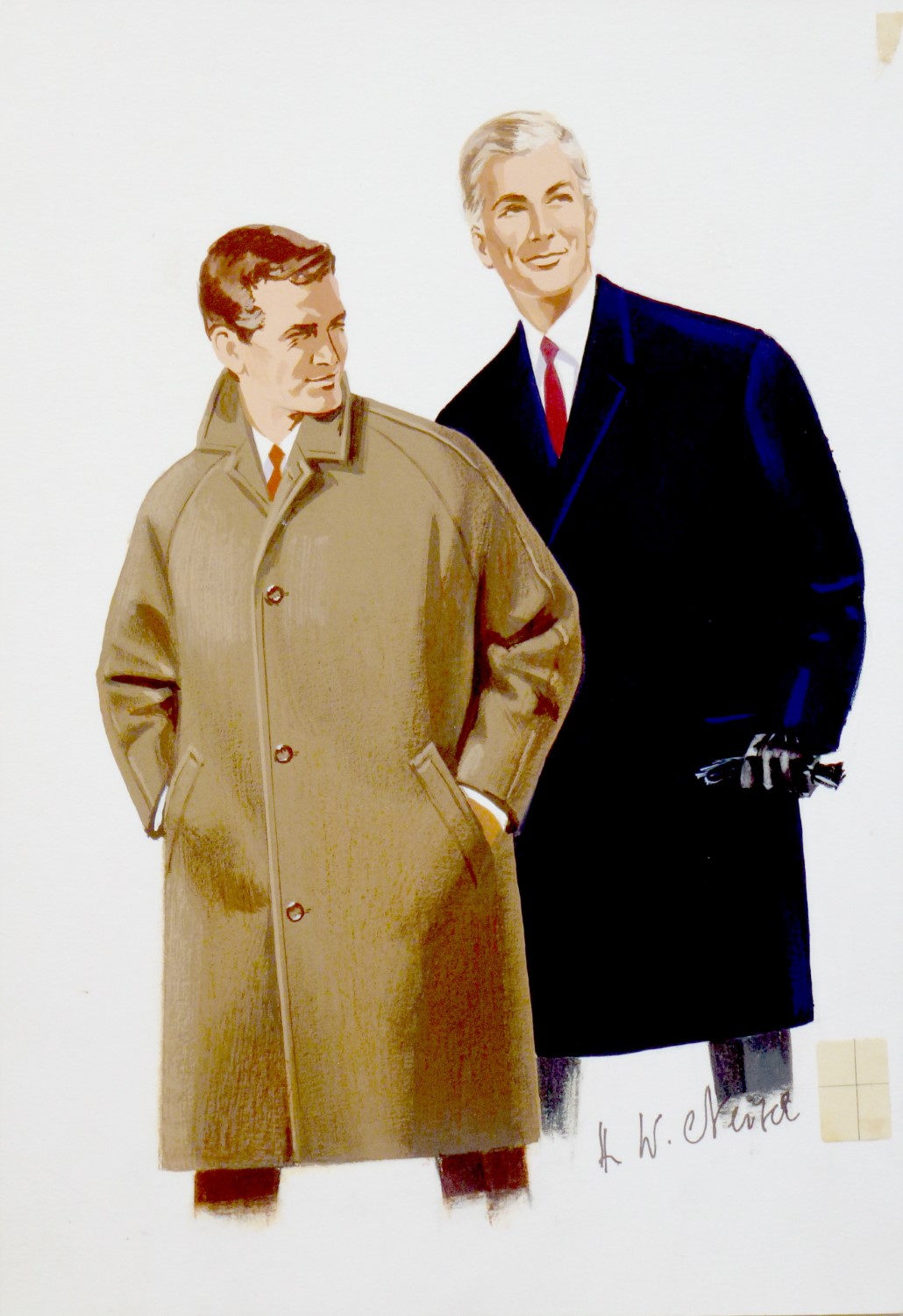 / Walbusch . ZWEI HERREN IM MANTEL . 1967 . Tempera/Collage auf Karton . 24,2X16,8 cm