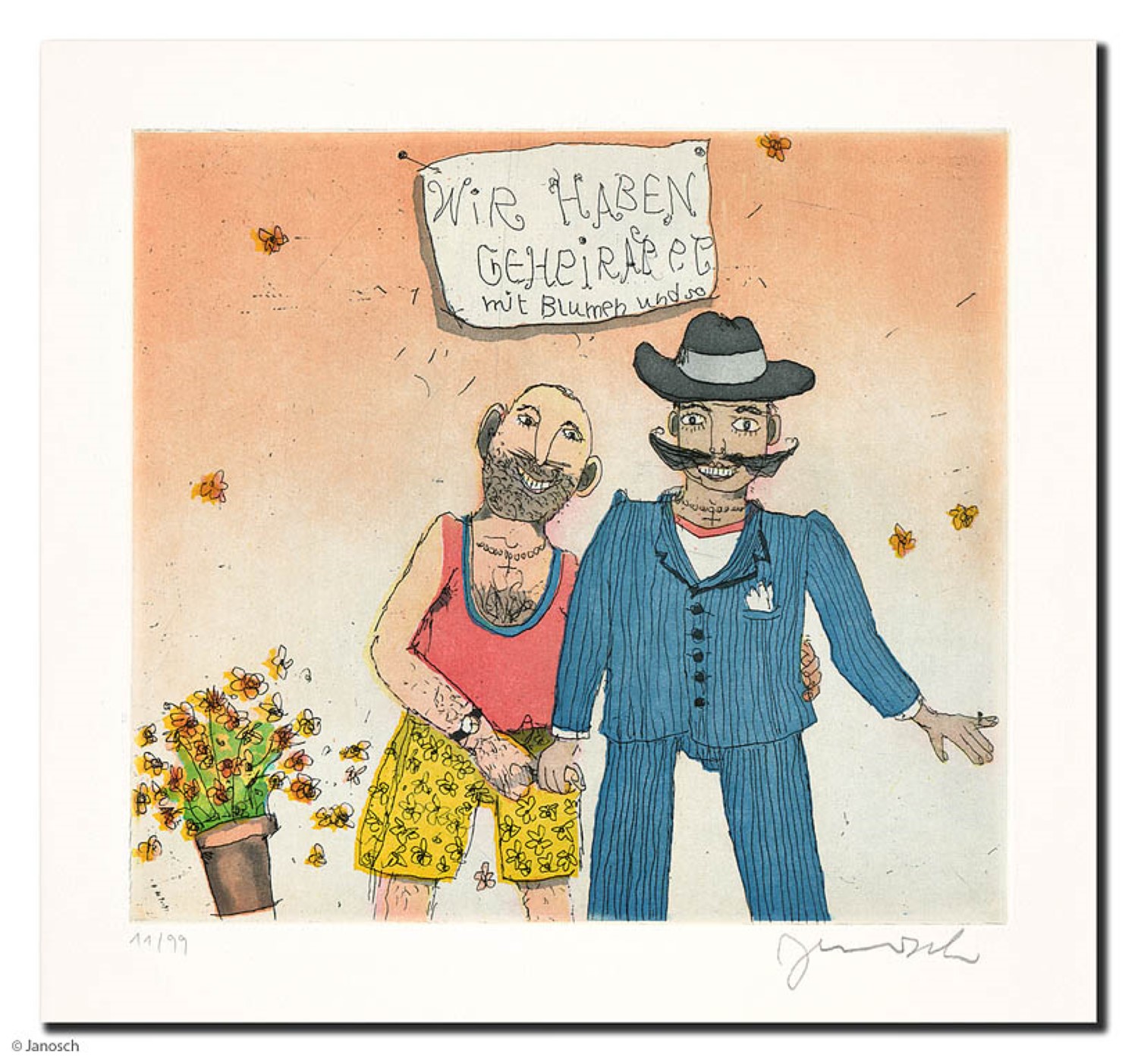 / WIR HABEN GEHEIRATET (JUNGS) . Radierung . Bildformat: 19×21 cm . Blatt: 10×50 cm