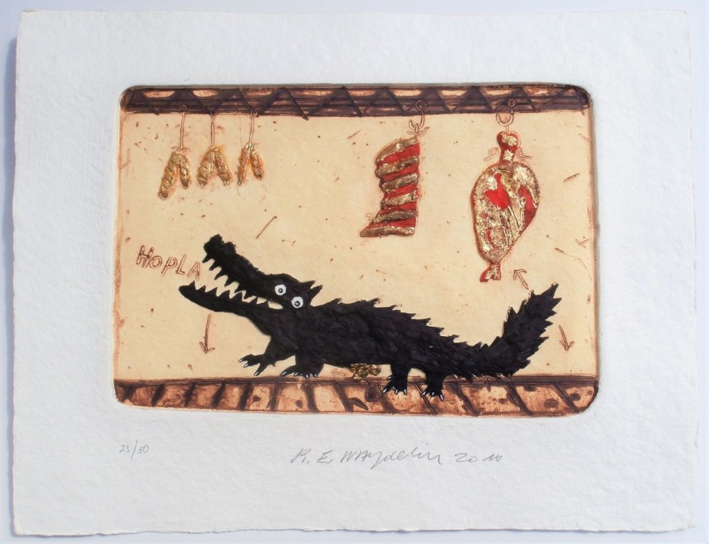 Prägedruck auf handgeschöpftem Papier mit Goldfolie . handsigniert . Auflage:50 . Bildgröße: 23x30cm . Blattgröße: 39x49cm