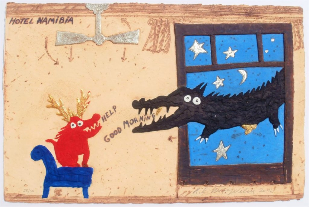 Prägedruck auf handgeschöpftem Papier mit Goldfolie . handsigniert . Auflage:50 . Bildgröße: 26x39cm . Blattgröße: 43x56cm